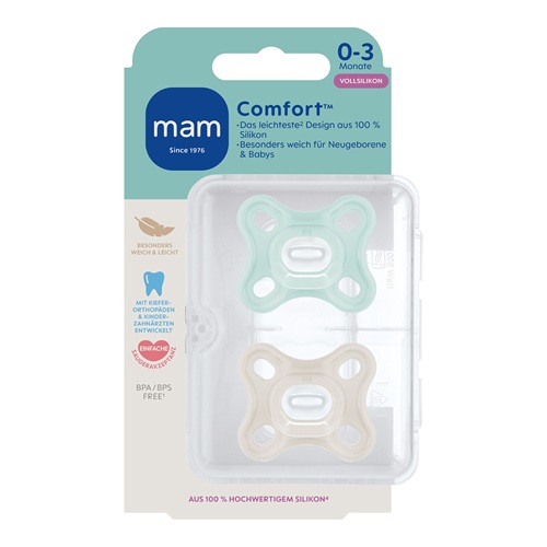 MAM Comfort fopspeen in een set van 2 stuks voor baby‘s van 0-3 maanden – Speciaal voor de behoeften van premature en pasgeboren baby’s.