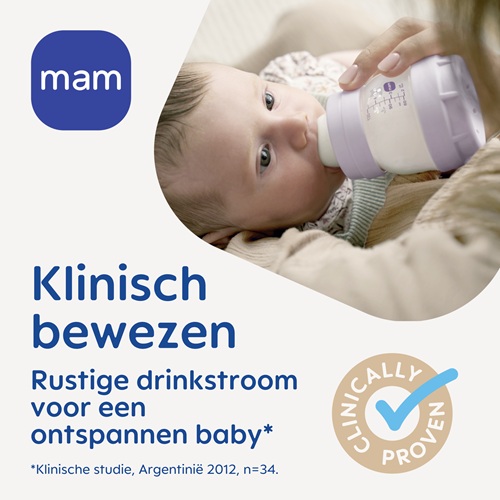 ⁴ Alle MAM flessen zijn gemaakt van BPA- en BPS-vrije materialen (BPA-vrij conform EU-richtlijnnr. 321/2011).