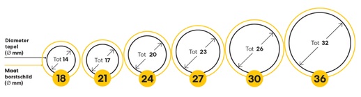 De juiste maat borstschild levert een optimale melkproductie op en zorgt ervoor dat de borsten goed geleegd worden. Je voorkomt ook beschadiging aan de tepels en verstopte melkkanalen. Er 4 schachtmaten om uit te kiezen: XS, S, M, L, XL.